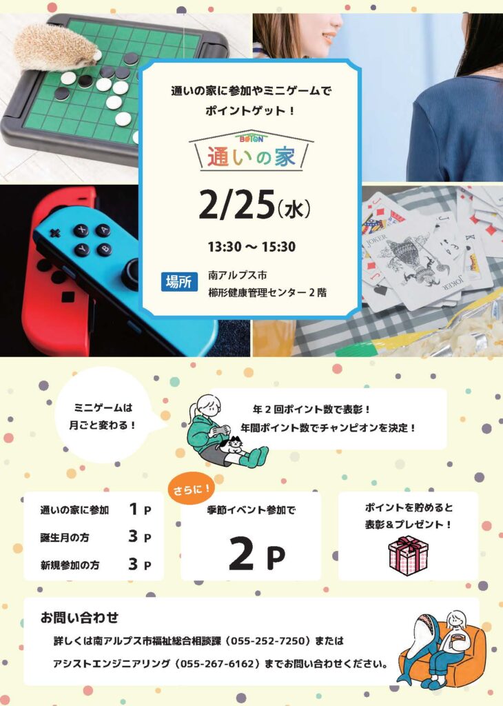 - 日時/2月25日(水)午後1時から午後3時30分まで(ゲーム大会は午後1時30分からになります)
